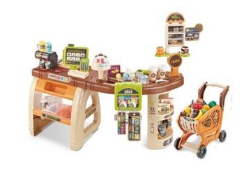 65 részes full extrás szupermarket asztal bevásárlókocsival és rengeteg extrával barna színben